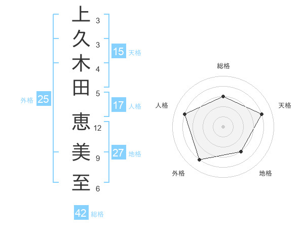 上久木田 恵美至さんを姓名の画数から五運を鑑定