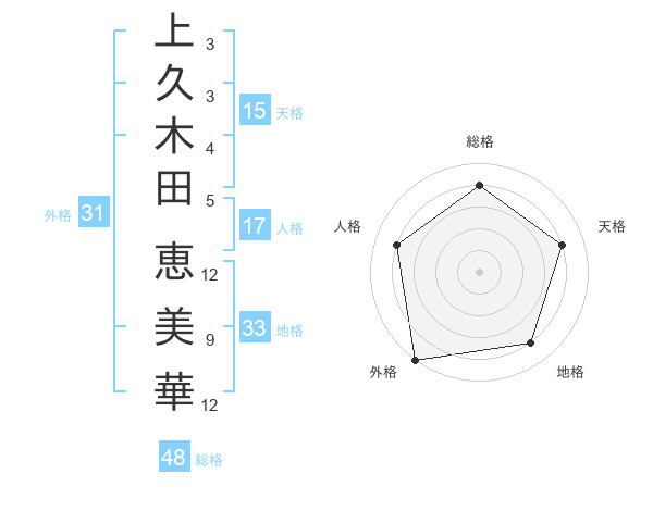 上久木田 恵美華さんを姓名の画数から五運を鑑定