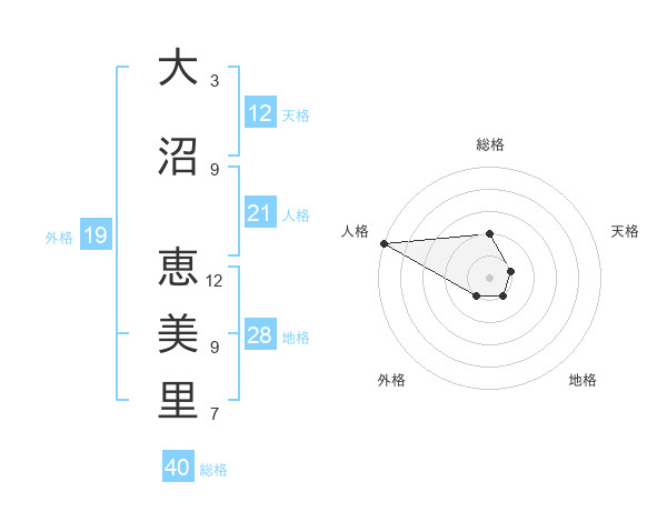 大沼 恵美里さんを姓名の画数から五運を鑑定