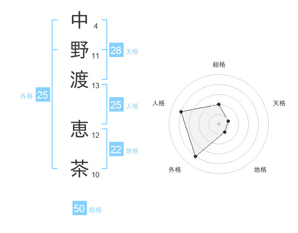 中野渡 恵茶さんの総格は50画の2点