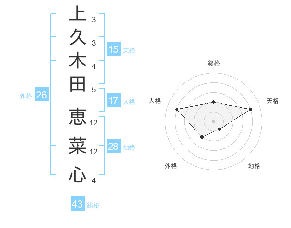 上久木田 恵菜心さんを姓名の画数から五運を鑑定