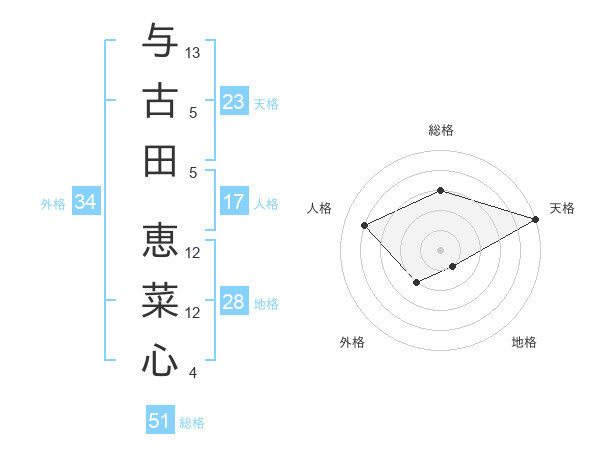 与古田 恵菜心さんの天格は23画の5点!