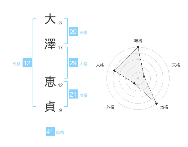 大澤 恵貞さんの総格は41画の5点!