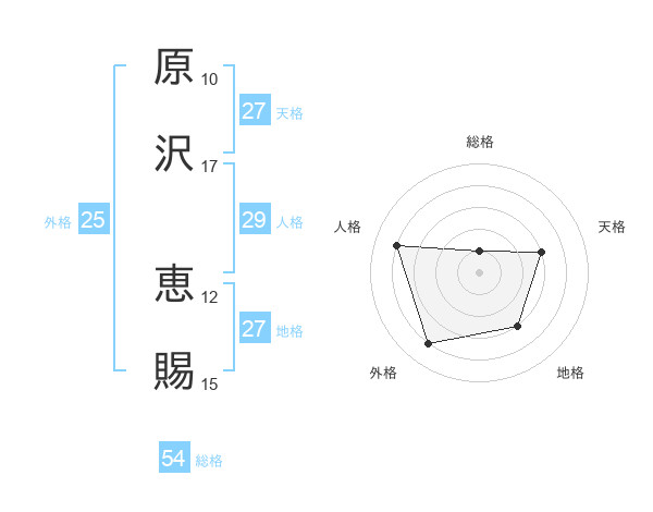 原沢 恵賜さんの地格は27画の3点!