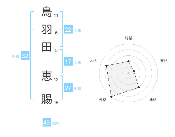 鳥羽田 恵賜さんを姓名の画数から五運を鑑定