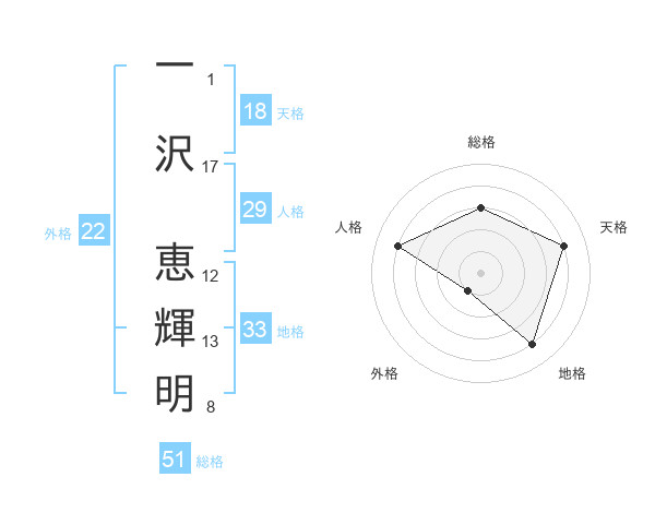 一沢 恵輝明さんを姓名の画数から五運を鑑定