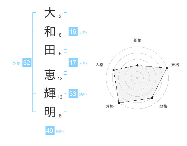 大和田 恵輝明さんの天格は16画の5点!