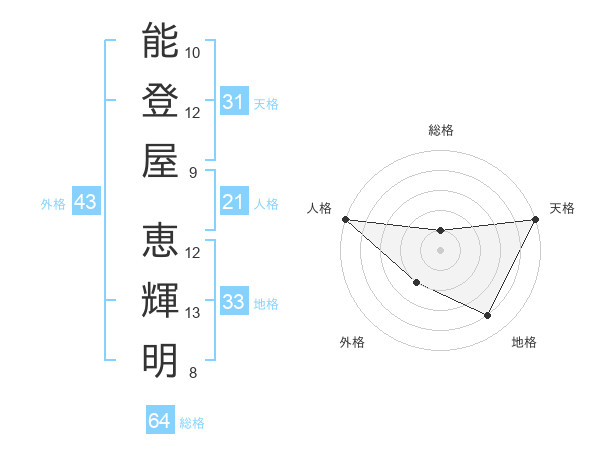 能登屋 恵輝明さんを姓名の画数から五運を鑑定