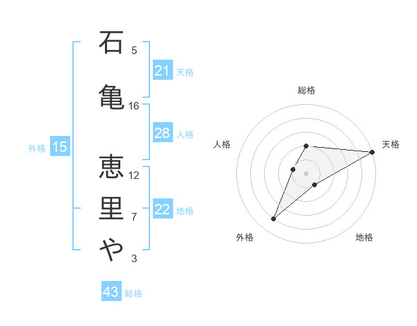 石亀 恵里やさんの天格は21画の5点!