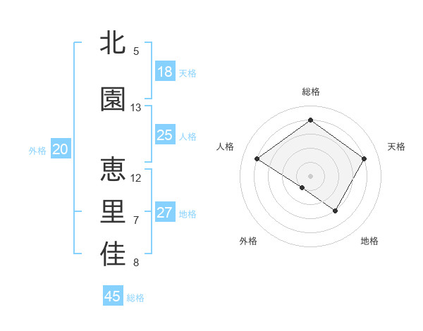 北園 恵里佳さんを姓名の画数から五運を鑑定