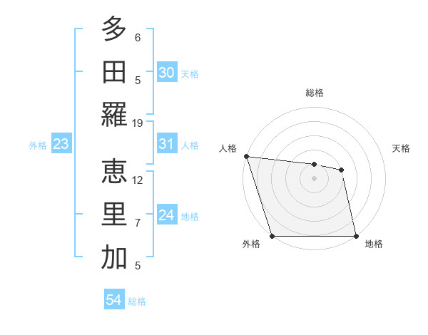 多田羅 恵里加さんを姓名の画数から五運を鑑定