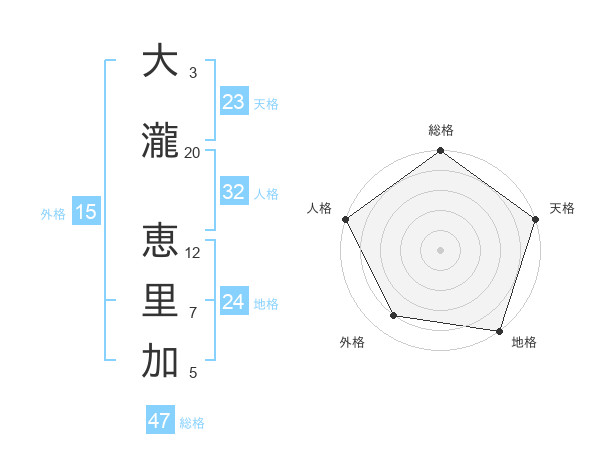 大瀧 恵里加さんを姓名の画数から五運を鑑定