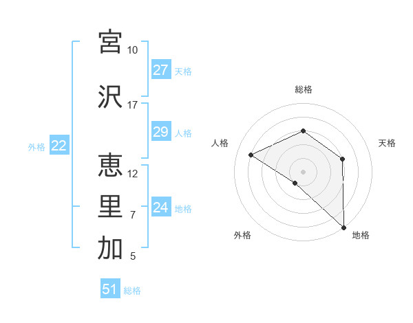宮沢 恵里加さんを姓名の画数から五運を鑑定