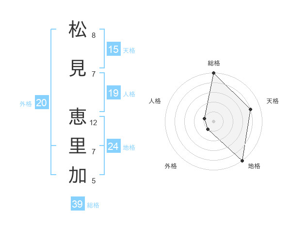 松見 恵里加さんを姓名の画数から五運を鑑定