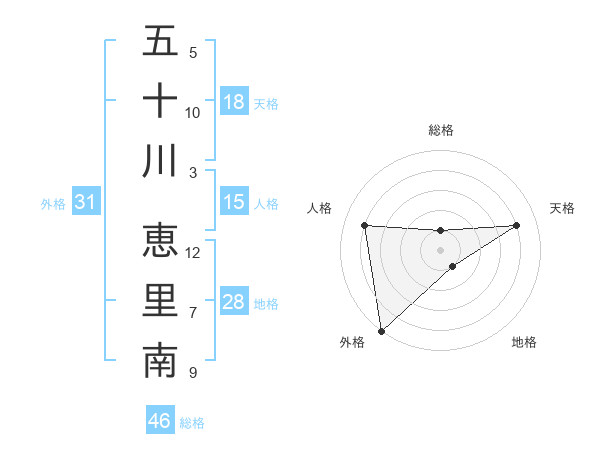 五十川 恵里南さんを姓名の画数から五運を鑑定