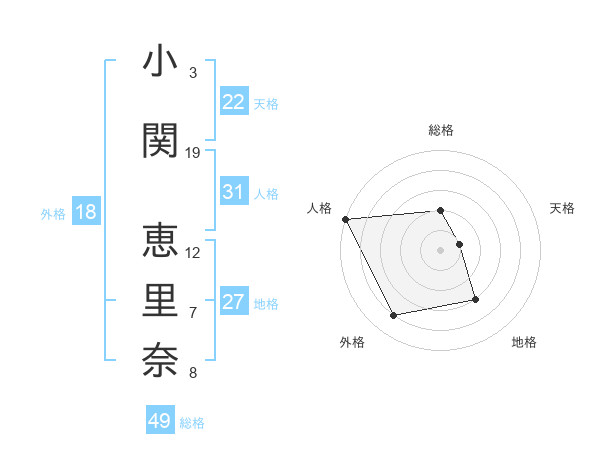 小関 恵里奈さんを姓名の画数から五運を鑑定