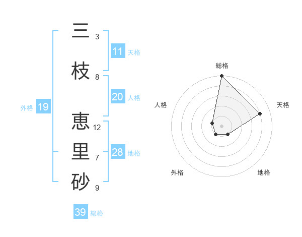 三枝 恵里砂さんの地格は28画の1点!