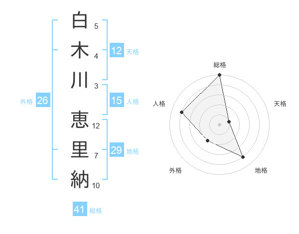 白木川 恵里納さんの総格は41画の5点!