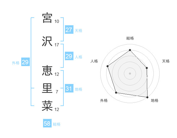 宮沢 恵里菜さんの総格は58画の4点