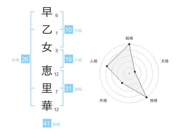 早乙女 恵里華さんの地格は31画の5点!