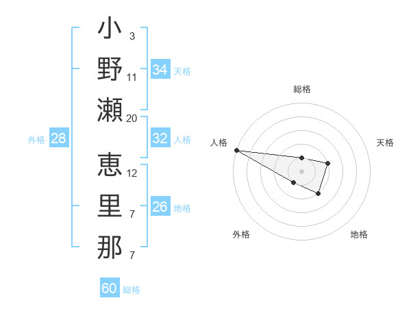 小野瀬 恵里那さんを姓名の画数から五運を鑑定