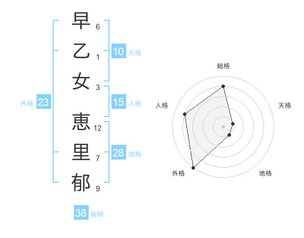 早乙女 恵里郁さんを姓名の画数から五運を鑑定