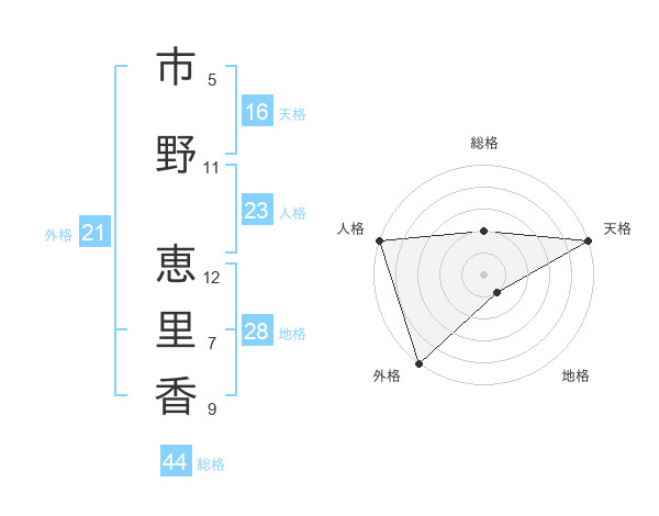 市野 恵里香さんの天格は16画の5点!