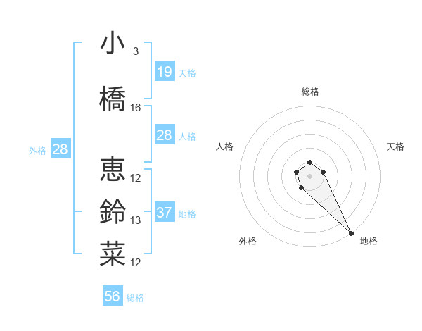小橋 恵鈴菜さんを姓名の画数から五運を鑑定