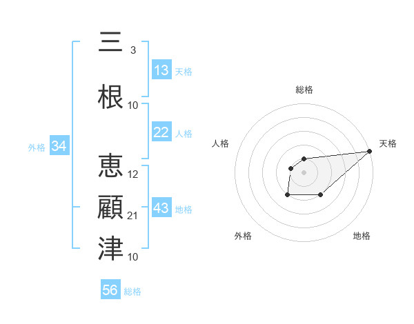 三根 恵顧津さんの天格は13画の5点!