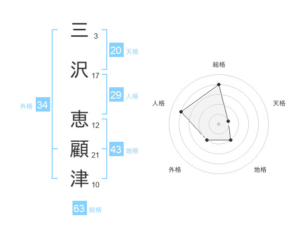 三沢 恵顧津さんを姓名の画数から五運を鑑定