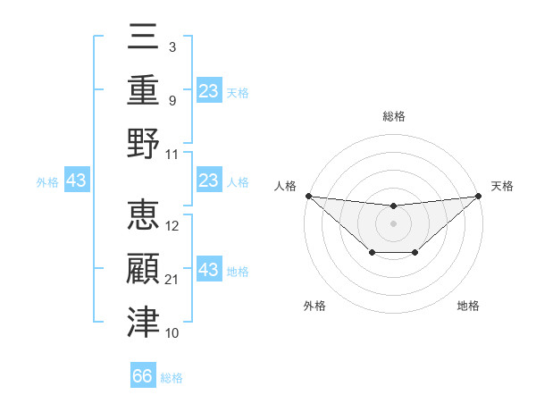 三重野 恵顧津さんを姓名の画数から五運を鑑定