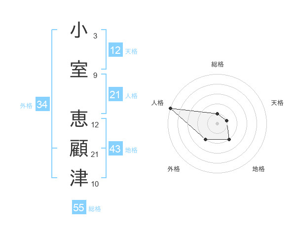 小室 恵顧津さんを姓名の画数から五運を鑑定