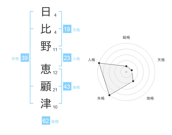 日比野 恵顧津さんを姓名の画数から五運を鑑定