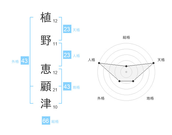 植野 恵顧津さんを姓名の画数から五運を鑑定