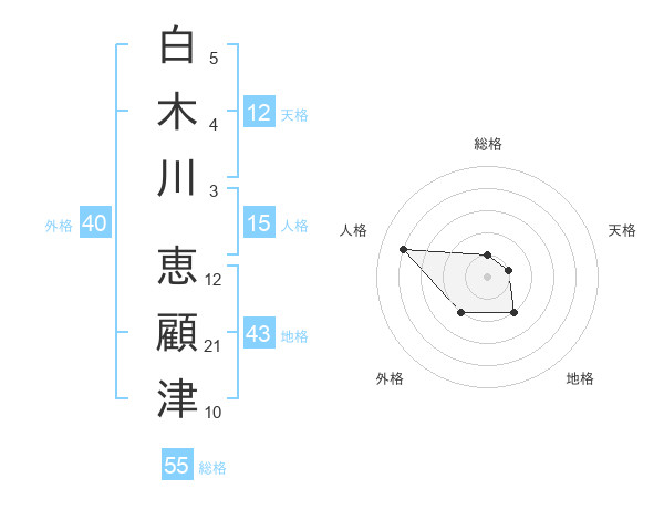 白木川 恵顧津さんを姓名の画数から五運を鑑定