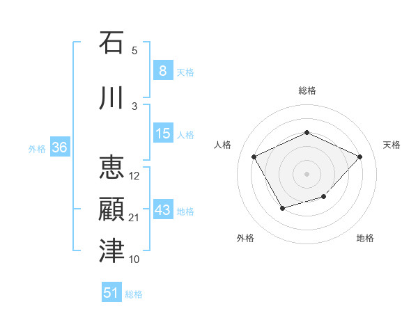 石川 恵顧津さんの総格は51画の3点