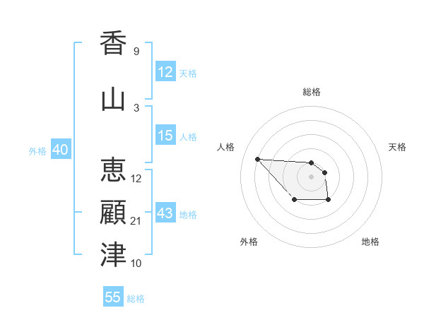 香山 恵顧津さんを姓名の画数から五運を鑑定