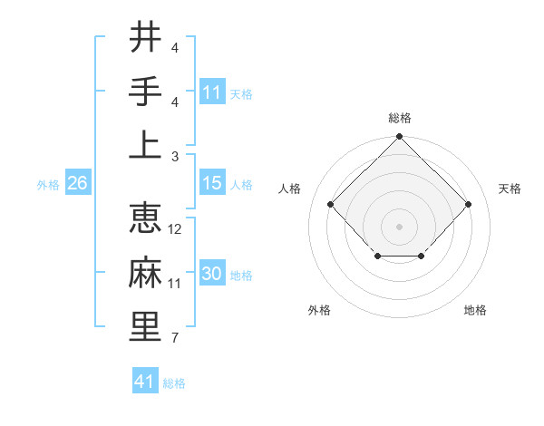 井手上 恵麻里さんを姓名の画数から五運を鑑定