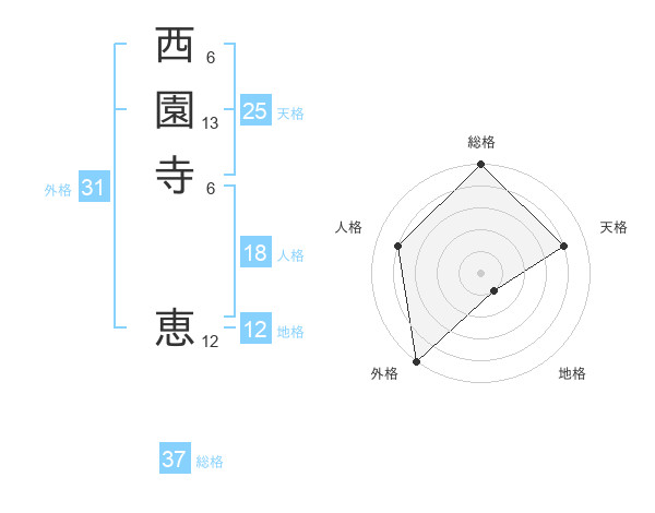 西園寺 恵さんを姓名の画数から五運を鑑定