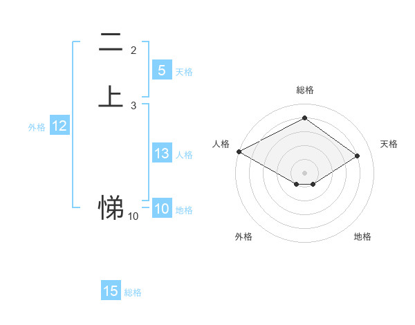 二上 悌さんの総格は15画の4点!
