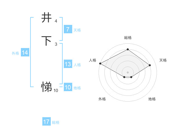 井下 悌さんの総格は17画の4点!