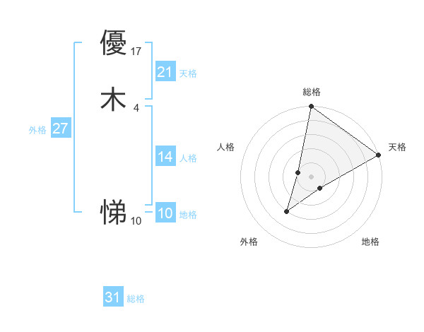 優木 悌さんの総格は31画の5点!