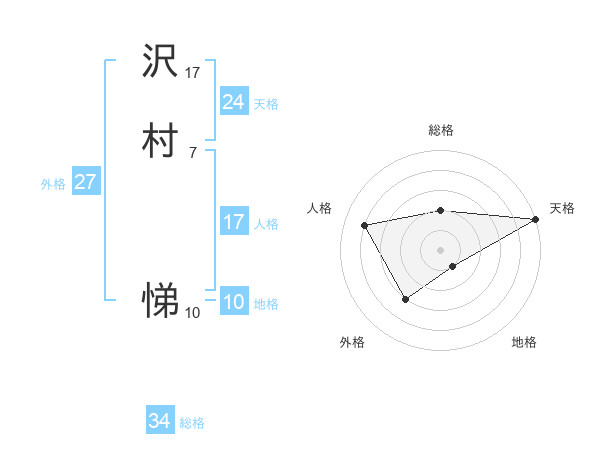 沢村 悌さんの総格は34画の2点!