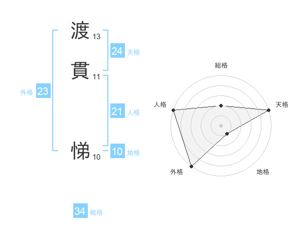 渡貫 悌さんの総格は34画の2点!