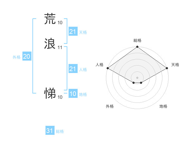 荒浪 悌さんの総格は31画の5点!