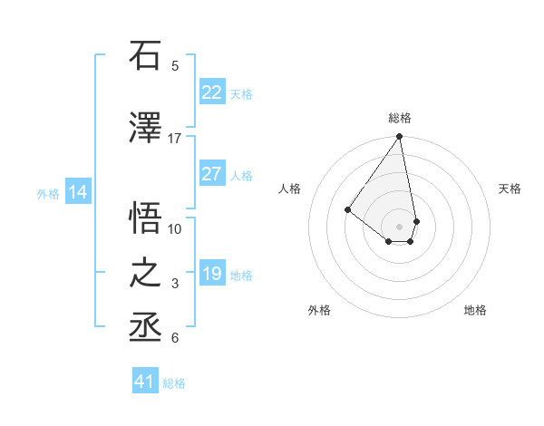 石澤 悟之丞さんの天格は22画の1点!