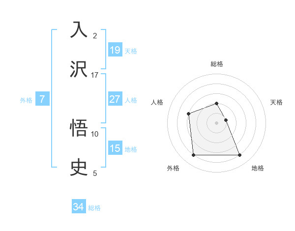 入沢 悟史さんを姓名の画数から五運を鑑定