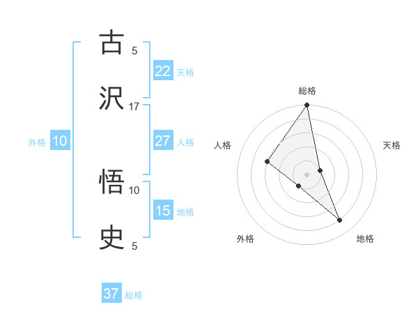 古沢 悟史さんを姓名の画数から五運を鑑定