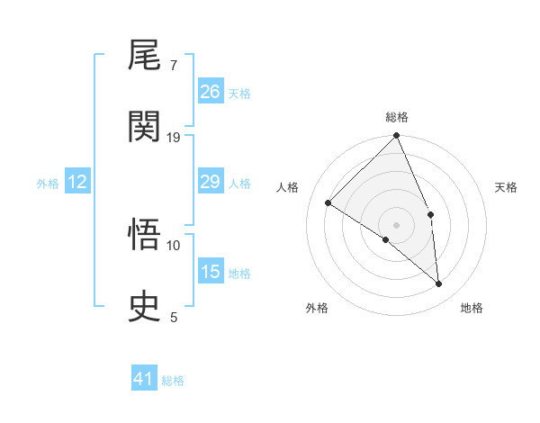 尾関 悟史さんを姓名の画数から五運を鑑定
