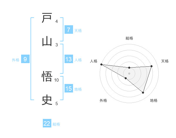 戸山 悟史さんの総格は22画の1点!